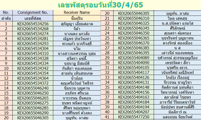 เลขพัสดุ รอบส่งวันที่30/04/2565