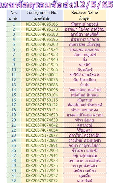 เลขพัสดุ รอบส่งวันที่ 12/05/2565