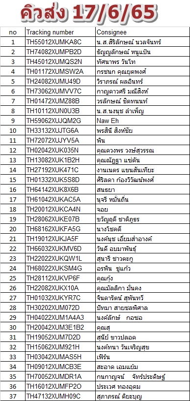 เลขพัสดุ รอบส่งวันที่ 17/06/2565