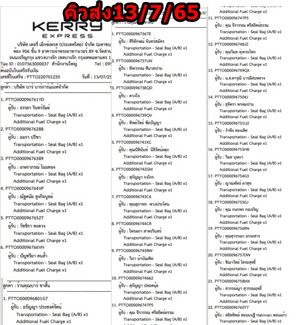 เลขพัสดุ รอบส่งวันที่ 13/07/2565