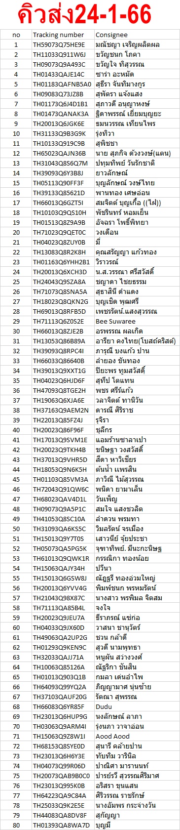 เลขพัสดุ รอบส่งวันที่ 24/1/66