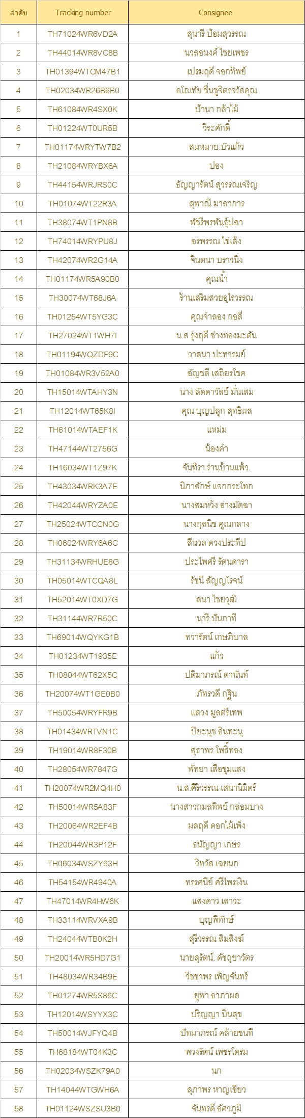 เลขพัสดุ รอบส่งวันที่ 20/11/2566