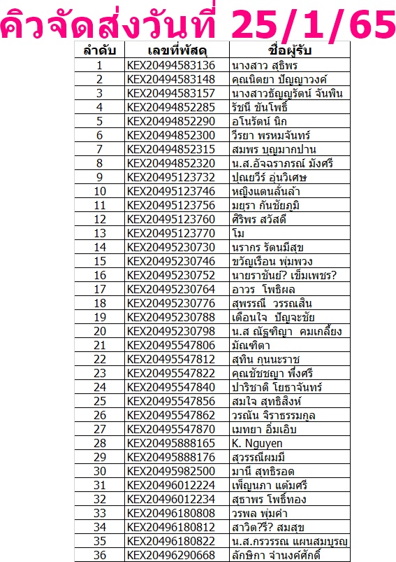 เลขพัสดุ รอบส่งวันที่ 25/1/2565