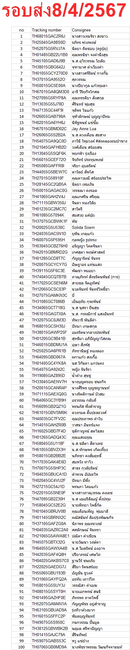 เลขพัสดุ รอบส่งวันที่ 08/04/2567