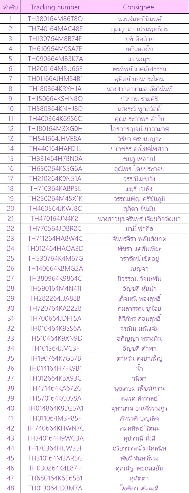 เลขพัสดุ รอบส่งวันที่ 14/09/2567