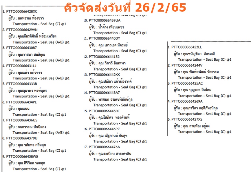 เลขพัสดุ รอบส่งวันที่ 26/02/2565