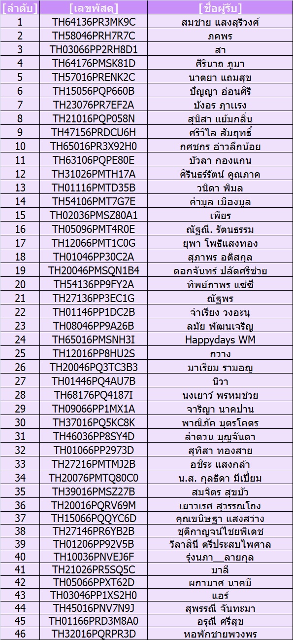 เลขพัสดุ รอบส่งวันที่ 11/01/2568
